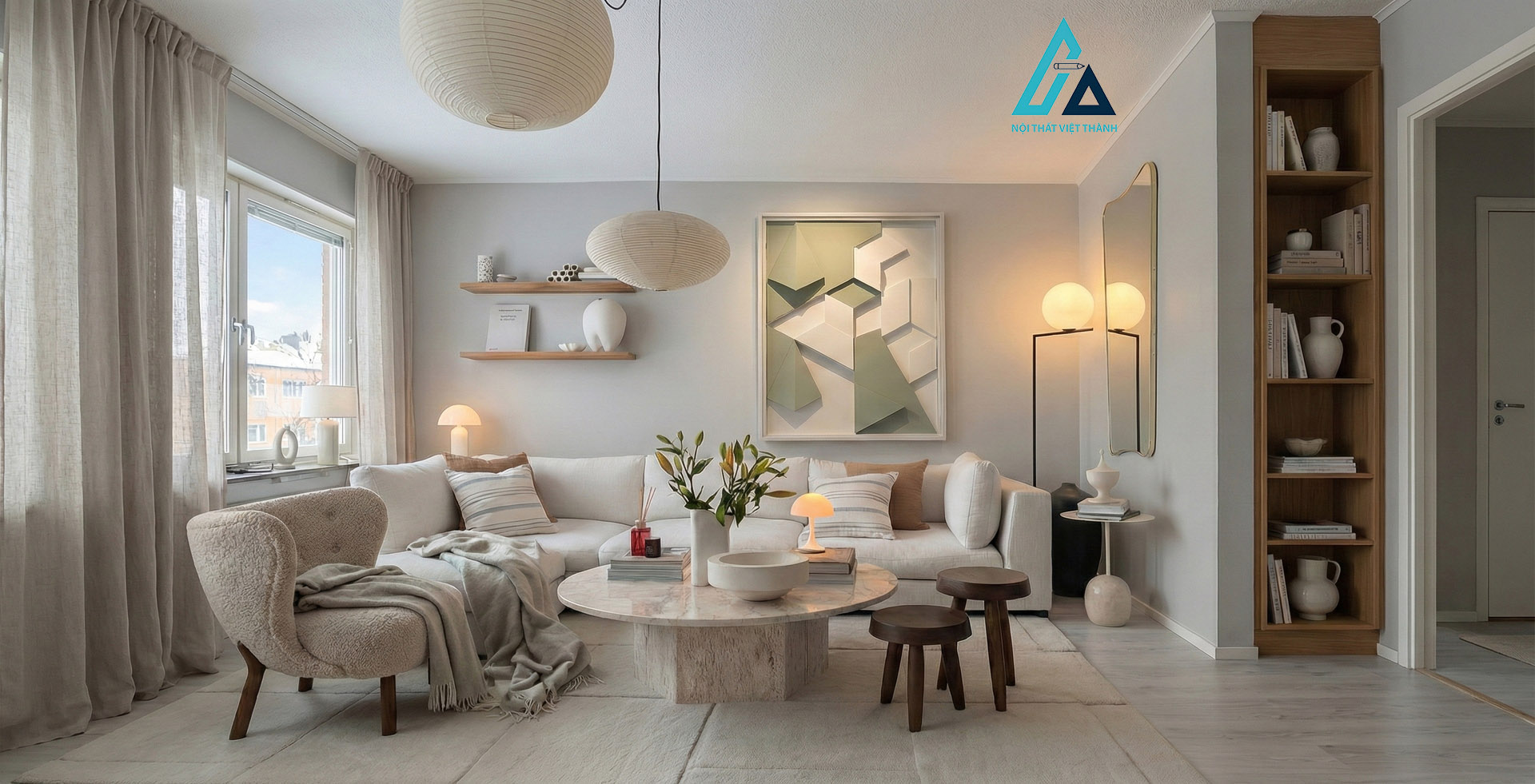 Trong phong cách này, các gam màu trắng, xám nhạt hoặc be thường được sử dụng làm màu nền chủ đạo, kết hợp cùng chất liệu gỗ sáng màu để tạo cảm giác ấm áp cho không gian. Nội thất được thiết kế đơn giản nhưng tinh tế, chú trọng vào công năng sử dụng và sự tiện nghi trong sinh hoạt. Nhờ vậy, phong cách Scandinavian rất phù hợp với những gia đình yêu thích không gian sống hiện đại, thanh lịch nhưng vẫn mang lại cảm giác gần gũi và dễ chịu